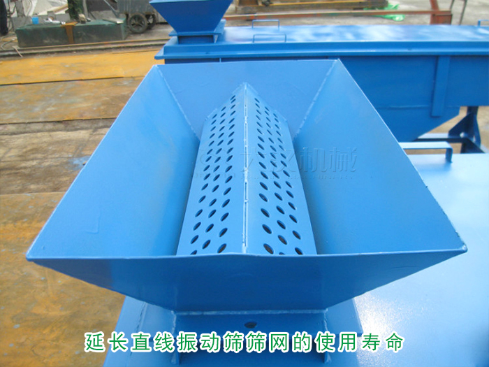 利用以上振動(dòng)篩分料器的作用,對(duì)于直線振動(dòng)篩的物料的投放,幫助物料的均勻篩分能夠在一定的情況下給。直線振動(dòng)篩的篩網(wǎng)的受壓力,振動(dòng)篩分料器間接的也延長(zhǎng)直線振動(dòng)篩篩網(wǎng)的使用壽命。