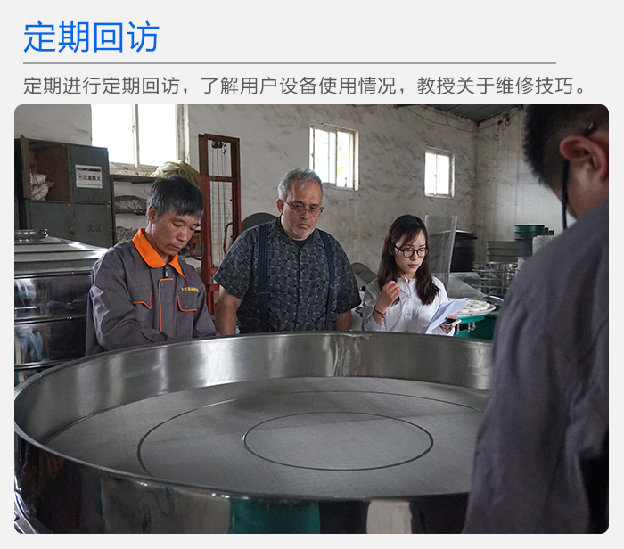大漢廠家有專也人員定期進(jìn)行定期回訪,了解用戶設(shè)備使用情況,教授關(guān)于超聲波振動(dòng)篩維修技巧。