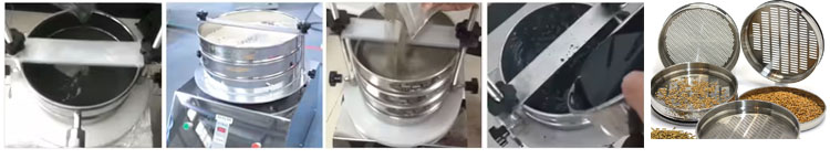 電磁振動篩工作時,采用電磁振動器用作振動源,振動經(jīng)底座傳遞至底座上由粗到細(xì)排列的一組標(biāo)準(zhǔn)試驗篩。同時,安裝在下部的振動電機對物料進(jìn)行篩選和篩分,物料在標(biāo)準(zhǔn)試驗篩的篩面上振動,使小于篩孔尺寸的物料顆粒篩入下層試驗篩,并逐層篩分,每層試驗篩的顆粒尺寸相同,從而實現(xiàn)不同粒徑物料的分離。