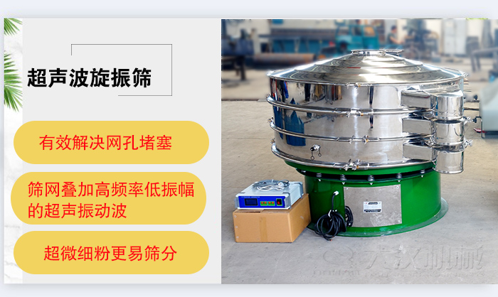超聲波旋動(dòng)篩用振動(dòng)電機(jī)上、下兩端安裝有偏心重錘,它將電機(jī)的旋轉(zhuǎn)運(yùn)動(dòng)轉(zhuǎn)變?yōu)樗健⒋怪薄A斜的三次元運(yùn)動(dòng),再把這個(gè)運(yùn)動(dòng)傳遞給篩面。