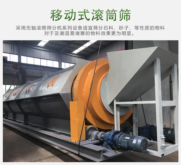 移動式滾筒篩沙機被廣泛應(yīng)用于礦山、建筑、交通、化工等行業(yè)。滾筒篩沙機常用在粗細物料的分級篩選,從而提高物料的質(zhì)量。